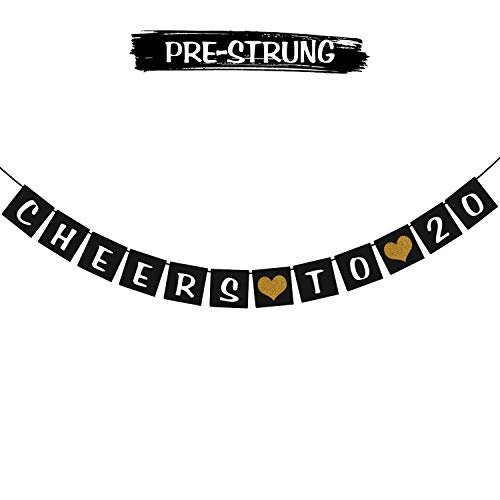 Cheers To 20 Birthday Banner Gold Glitter Heart For 20th Anniversary 20 Years Old Birthday Party Decoration Supplies Black Walmart Com